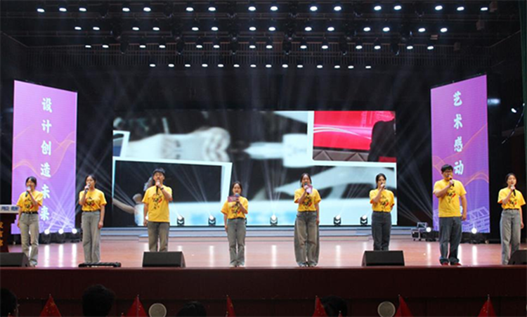 本次“青春走在新征程”主题课堂,按“青春出发·初心正燃”“青春实干·敢闯敢拼”“青春向前·未来有我”三个篇章依次开展,全方位展现设计艺术学院学子的青春风采与责任担当。“青春出发·初心正燃”篇章,本科生以合唱《我和我的未来》、舞蹈《锦绣启新程》,勾勒逐梦初心;“青春实干·敢闯敢拼”篇章,本科生模特队《赤玄·中国韵》走秀融合传统美学与青春活力,声乐队演唱《我是如此相信》传递实干精神;“青春向前·未来有我”篇章,学院以“研途逐光 艺创未来”为核心,呈现研究生风采,汤新星老师带领的“绘梦成彩”主题走秀,结合优秀研究生代表演讲,集中展现学子科研深耕、实践创新与青春奉献的精神风貌,彰显“以设计赋能社会”的初心信念。