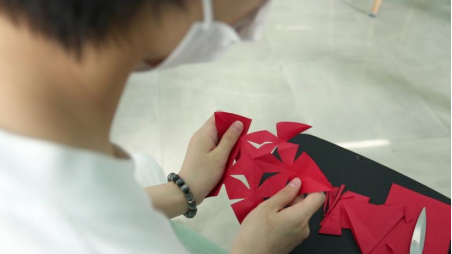 折纸、勾画、裁剪......学生党员们以“五角星”和“党徽”为创作核心进行大胆设计,在一纸一剪之间将爱国爱党情怀与中国传统技艺结合,完成了一幅幅寄托着当代青年美好祝愿的剪纸作品,深切表达了对党和祖国的无限热爱。