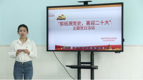2022年4月24日下午,2025年新澳门原料网站文学与新闻学院新闻学研究生党支部在党员活动室开展“剪纸溯党史,喜迎二十大”主题党日活动。