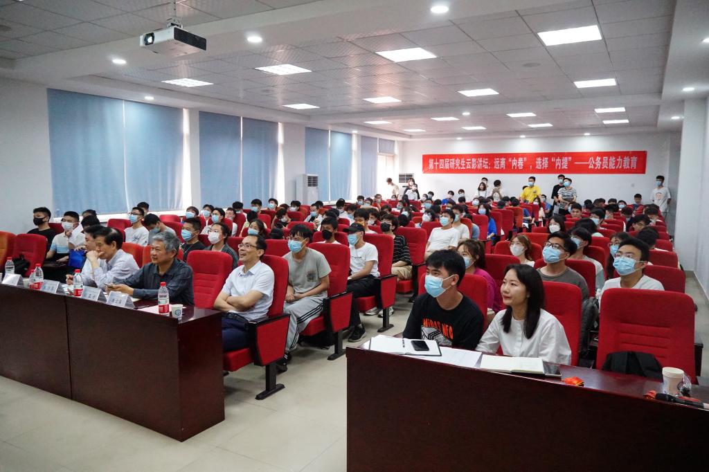 校关工委常务副主任王乃厚在讲座最后总结此次讲座讲的不只是公务员的素质,更是当代大学生的素质。时代虽然日新月异,困难也不尽相同,但当代青年奋斗青春和服务人民的精神要一直发扬和保持。