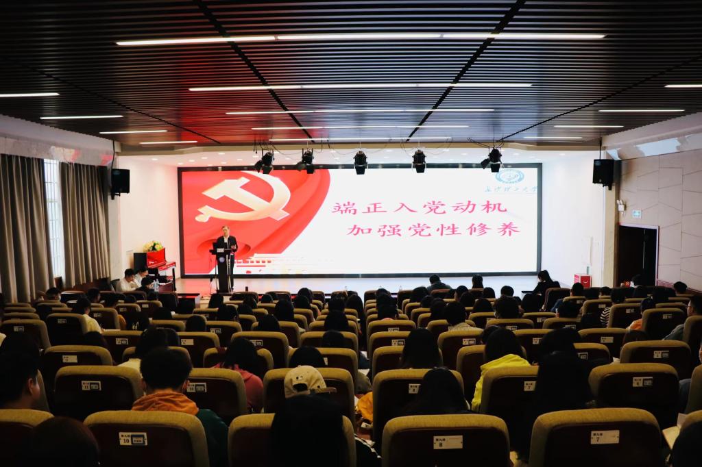 彭琼英从“新时代大学生如何创造条件早日加入中国共产党”展开讲述,她提出首先要端正入党动机,积极投身实践,在学习和生活中以党员的标准严格要求自己,自觉接受组织的培养、教育和考察,自觉接受教育批评,弥补不足并加以改进。