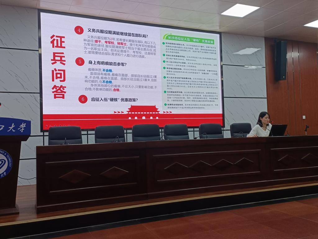 随后,綦丽向同学们讲解了征兵入伍相关政策,并就征兵入伍中可能遇到的一些疑问做出解说,积极号召有意向的同学们积极尝试,树立报国志。同时,希望同学们通过聆听蒋利杨学长的故事,能及时省视自己的大学学习生活,争做一名有目标、有梦想的新时代青年。