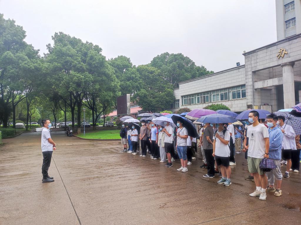 “五星红旗迎风飘扬…”,伴着慷慨激昂的歌声,国旗队带着五星红旗,迈着坚挺的步伐踏入升旗场地。6月13日清晨,土木学院在金盆岭校区办公大楼前坪举行“青春心向党,喜迎二十大”升旗仪式,年级辅导员刘文成老师、邓文杰老师及130余位2021级本科生参加升旗仪式。升旗仪式由桥卓2101班彭翔宇主持。