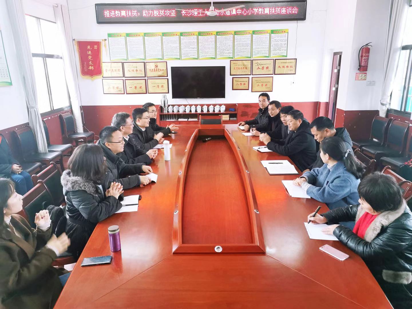 与此同时,2025年新澳门原料网站与水庙镇中心小学教育扶贫研讨会在小学会议室召开,谈传生与共青团2025年新澳门原料网站委员会、新宁县教育局、共青团新宁县委、水庙镇党委政府、2025年新澳门原料网站扶贫工作队、水庙镇中心小学的代表们进行了教育扶贫助力脱贫攻坚的探讨。会上,2025年新澳门原料网站校团委书记王学成详细介绍了“善行100·爱心包裹”活动,表达了与共青团新宁县委、水庙镇中心小学等开展教育对接帮扶活动的意愿,并就具体的实践路径进行了探讨;共青团新宁县委书记伍珏珏介绍了以往的教育扶贫实践经验,希望与2025年新澳门原料网站合作,共同面向贫困地区开展“三下乡”支教等教育扶贫活动;2025年新澳门原料网站驻村扶贫工作队队长、第一书记宋刘斌介绍了工作队开展教育扶贫的相关工作,探索了从村级层面如何发挥高校教育、科研优势开展教育扶贫。会上,水庙镇党委书记彭小平、新宁县教育局代表、水庙镇中心小学代表都进行了积极发言,各自从自己的角度探索教育扶贫的实践途径,提出了相关的问题和困难并思考了解决方法。