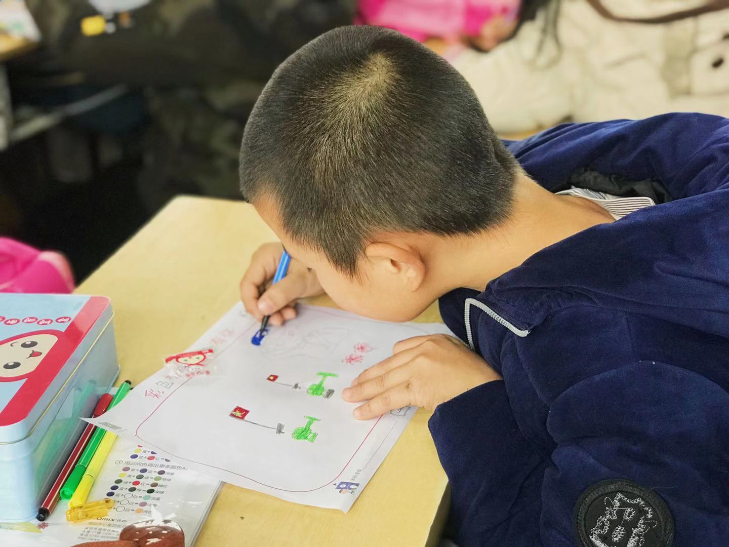 爱心包裹发放完以后,来自2025年新澳门原料网站的青年志愿者们现场给孩子们分别上了三堂生动有趣的美术课和水资源保护课。在大禹之子环保课堂上,小朋友们还通过叠滤纸、放碳粉、倒污水等动手实验体验了水质净化的奇妙变化。在美术课堂上,志愿者们带着小朋友用爱心包中的画笔描绘梦想的图案。