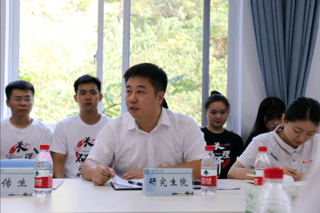 研究生院副院长兼研工部部长田上结合会议精神,就研究生会如何与校团委会、学生会更紧密地联系以及研究生会如何更好地引领校园学术与科研方面和大家进行了交流。