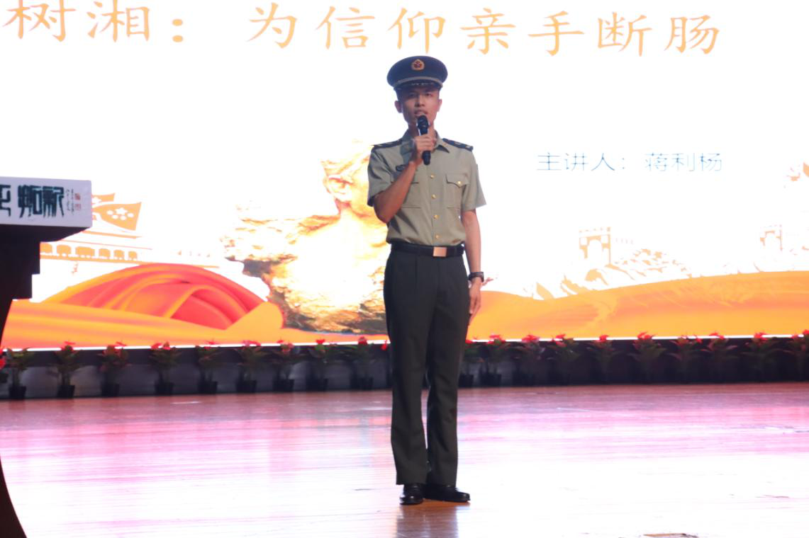 “红色青年讲师团”蒋利杨、肖屹屿、刘婧等7名“雄鹰班”同学分别讲述了《陈树湘—为信仰亲手断肠》、《可爱的中国》、《刑场上的婚礼》、《国歌》等红色故事。设计与艺术学院“青马班”学员黄智颖听后,不由发出这样的感慨:“在烽火连天的岁月里,革命先辈无论经历了多少艰难困苦,都始终保持着赤诚为民生、为国家的家国情怀,而新时代的我们应更应坚定理想信念,在为民服务中发扬奉献精神,把青春奉献在祖国需要的地方!”