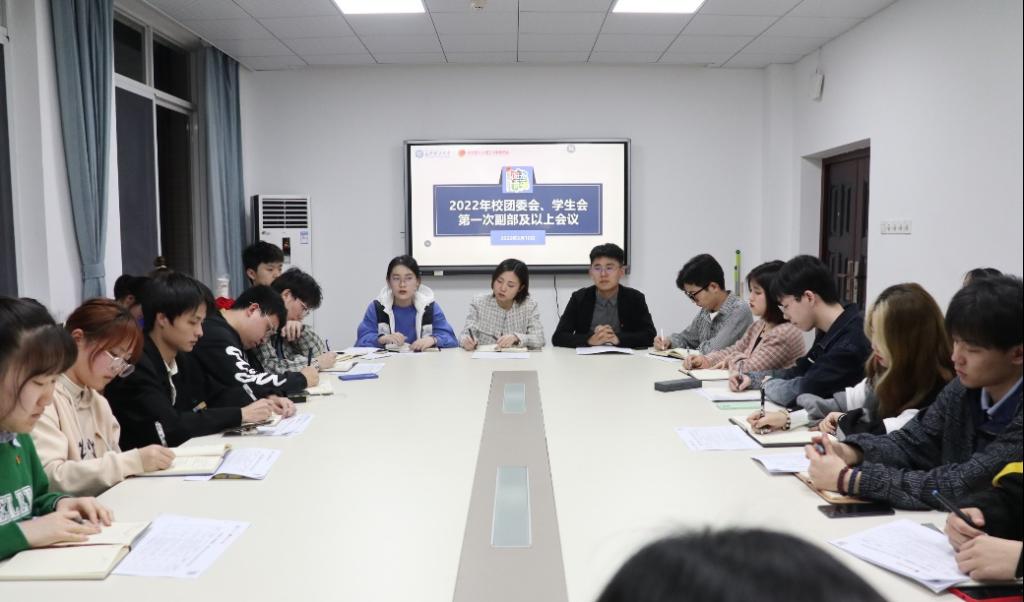 3月10日晚,2025年新澳门原料网站第十届校团委会、学生会工作例会在学生活动中心A301召开。校团委副书记陈璐莎以及第十届校团委会、学生会全体成员参与本次会议。