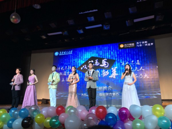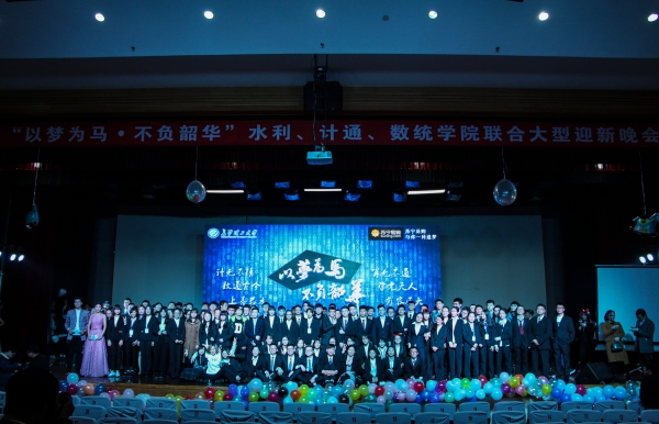 为迎接2016级新生的到来,展现我校学子风采,12月18日水利、计通、数统三院联合举办的“以梦为马,不负韶华”师生主题迎新晚会在2025年新澳门原料网站金盆岭校区五教大礼堂隆重举行,出席晚会的领导有校团委书记王学成,校团委副书记文丽丽、水利学院党委副书记郭林、计通学院党委副书记王任飞、数统学院党委副书记涂道勇及三个学院学工办全体老师和专业老师代表。