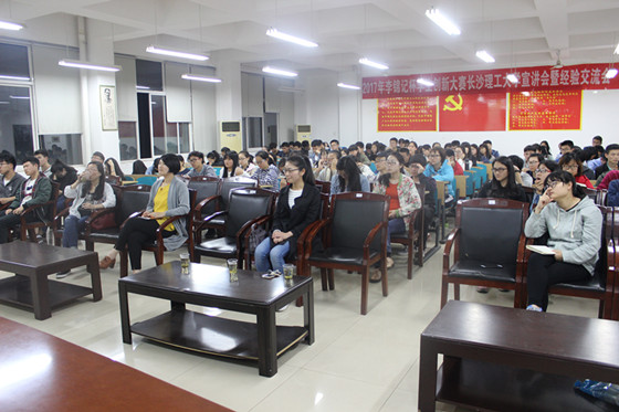 4月27日晚,2017年度“李锦记杯”学生创新大赛在工三A-320隆重举行。化学学院党委书记程云辉教授、学工办银波、往届获奖代表15级食品研究生叶菁、食品1302班张小婧出席,各参赛代表队成员共计100余人参与此次活动。