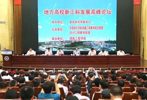 5月11日,全国地方高校卓越工程教育校企联盟、CDIO工程教育联盟主办的“全国地方高校新工科发展高峰论坛”在湖南工程学院召开,湖南省教育厅副厅长葛建中、教育部高教司理工处副处长侯永峰出席会议并讲话。来自浙江大学、上海工程技术大学、温州大学等100余所高校的260多名高等教育专家学者参加。汽机学院院长杜荣华教授、副院长刘志强、机电系主任唐宏宾参加了此次论坛。