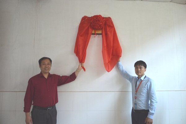 李峰和李小波共同签订校企合作协议并为校企合作基地揭牌。