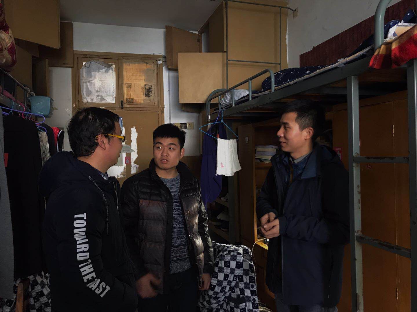 1月28日,土木学院党委副书记王煜坤及汪伦、贺佐杰、孙佳乐等人深入实验室和学生宿舍,关心留校本科生和研究生的假期学习生活情况。