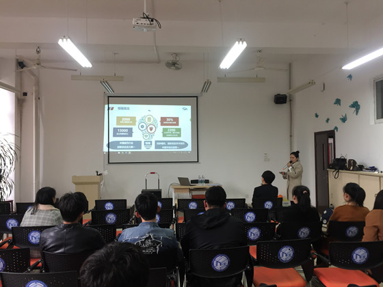 公司负责人杨丹经理介绍公司基本状况并为同学们逐一解答疑惑,公司秉承以德为重 德才兼备 培养与引进并举的人才战略,拥有完备的员工培训系统,通过复合式营销,传递最新的医药研究成果。宣讲结束后,公司进行了简历收集和初筛,并安排了一对一面试。