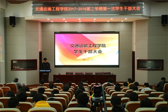 316日中午交通学院于工二B301召开2017-2018第二学期第一次学生干部大会。院党委副书记田上对工作提出要求,院学工办全体辅导员介绍工作重点。