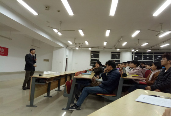 首先,马洪江讲解了有关全国大学生"恩智浦"杯智能汽车竞赛的比赛重点、比赛时间、地点等相关事情。樊绍胜介绍了有关挑战杯、全国互联网+”创新创业大赛、电子设计大赛以及科技立项的比赛目的及比赛流程。随后,他就如何调节比赛与上课的时间以及对比赛的态度进行详细讲解。樊绍胜强调:"大学生要提高综合能力,在大学四年主要目的是学知识,培养能力。"在场学生反应十分热烈,还积极进行了有关比赛方面的询问。