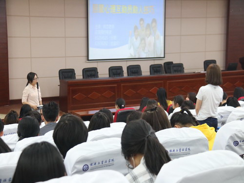 培训内容分为朋辈心理互助工作概述、大学生常见心理问题识别与处理、朋辈心理互助员助人技巧三个专题,共计6个课时。任课老师将角色扮演、案例分析、互动提问等培训方式穿插其中,让学员在掌握理论知识的同时,也提升了朋辈自助与互助水平。丰富的知识,有趣的形式,使得课堂既严肃又活泼,让朋辈心理互助员受益匪浅。此外,学院还安排了团体心理辅导和案例分析体验活动,布置了撰写个人成长报告等作业,让学生强化课堂知识。
