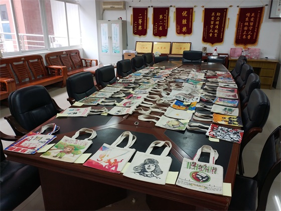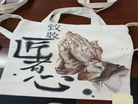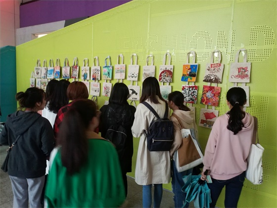 本次校园活动从报名开始就得到了全校同学的关注与广泛参与,在报名现场,来自服装1603班的陈涛同学表达了自己的看法,她说:“校园里活动很多,但如果一个活动在充满乐趣的同时又富有意义,我们都愿意参与进来成为一份子。”在优秀作品的展示现场,49件凝聚美好心意的作品吸引来了许多同学的驻足观看,平淡无奇的白色帆布袋因为同学们的画而变得与众不同,有同学画了在蓝色大海里弯腰捡贝的劳动者,有同学画了一双青筋凸起的手以致敬匠者之心,有同学画了祖国具有代表性的建筑来赞美劳动者。来自产品1601班的刘奚林同学说:“这些画想象瑰丽,在五一劳动节到来之际,这些作品带着我们青年学子的美好祝福飞向劳动人民向他们致敬。”