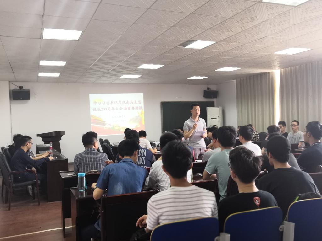 5月4日上午10点,纪念马克思诞辰200周年大会在人民大会堂举行,中午,土木学院师生在工科二号楼学习讨论习近平总书记在大会上的重要讲话内容,学工办老师和党员代表参加。