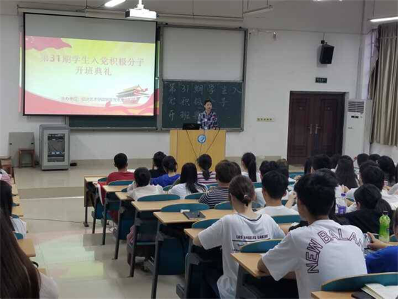 为了深入贯彻学习党的十九大精神,培育与践行社会主义核心价值观,进一步加强学生入党积极分子的教育和培养,艺术学院于5月8日晚在建筑艺术楼A102举办第三十一期入党积极分子培训班。