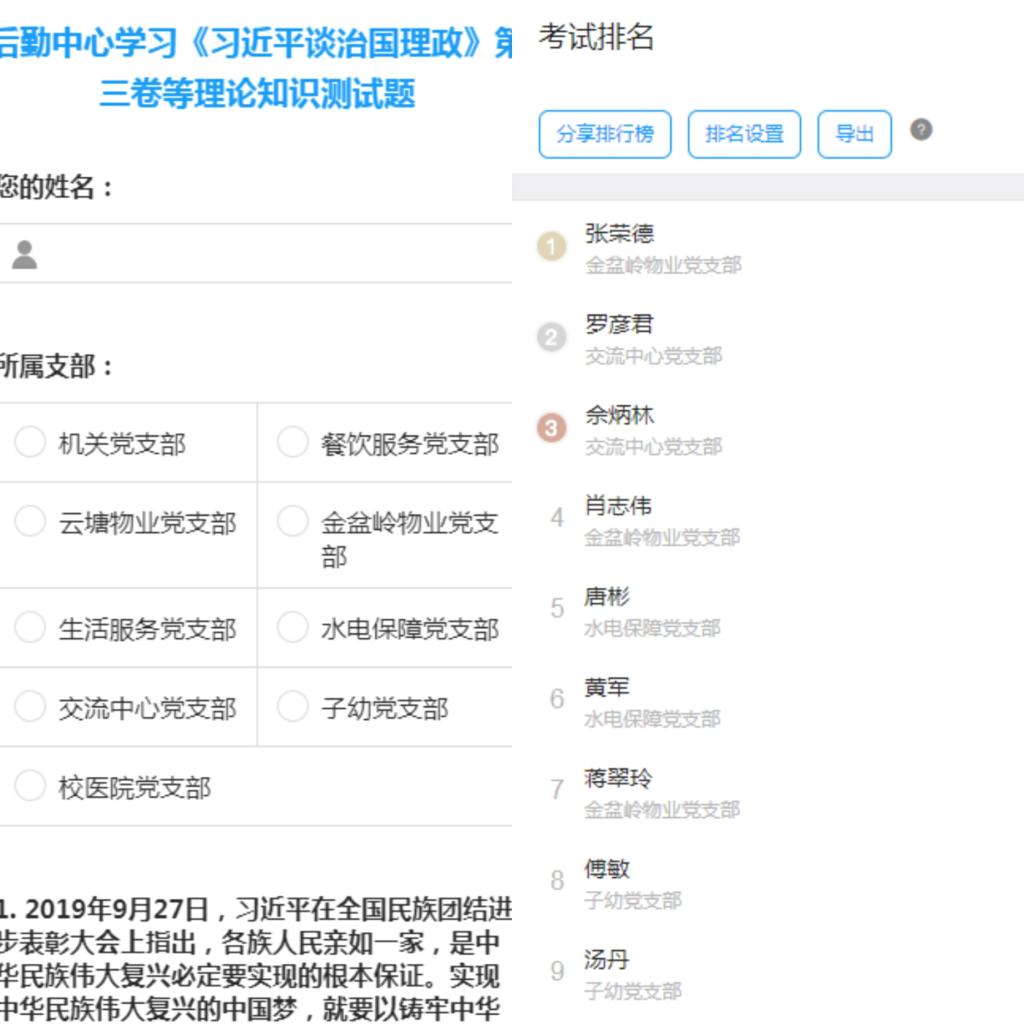1028日下午,后勤中心党委组织全体党员、入党积极分子利用手机软件进行《习近平谈治国理政》第三卷等理论学习线上测试