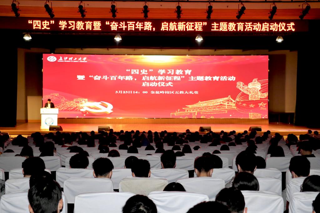 3月23日下午,我校学生“四史”学习教育暨“奋斗百年路,启航新征程”主题教育活动启动仪式在金盆岭校区五教大礼堂举行。学工部、团委、研究生院、关工委等部门负责人,各学院学生工作负责人、辅导员代表和学生代表参加活动。启动仪式由学工部副部长霍向阳主持。