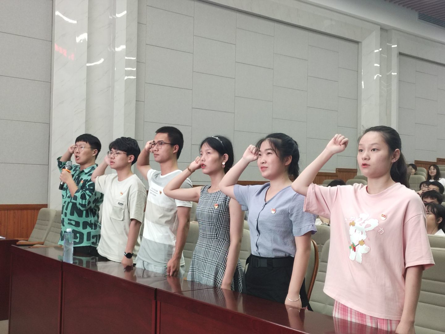 观影开始前,在场全体党员同志肃然起立,佩戴党徽宣读入党誓词,重温共产党人的初心与使命。本次观看的是纪录片《苦难辉煌》该片高扬中国共产党全心全意为广大人民群众利益而奋斗的精神旗帜,鼓舞着全国人民实现中华民族伟大复兴的信心,生动讲述了中国共产党付出了中国历史上所有政治集团从未付出过的重大代价和巨大牺牲,最终为中华民族杀出一条血路,蹚出一条新路,使这个民族从苦难走向辉煌,给同学们带来了心灵上的震撼和精神上的洗礼。观影结束后,工作人员组织活动参与人员进行党史知识有奖问答。同学们积极踊跃地举手作答,加深了对党的理论知识的了解