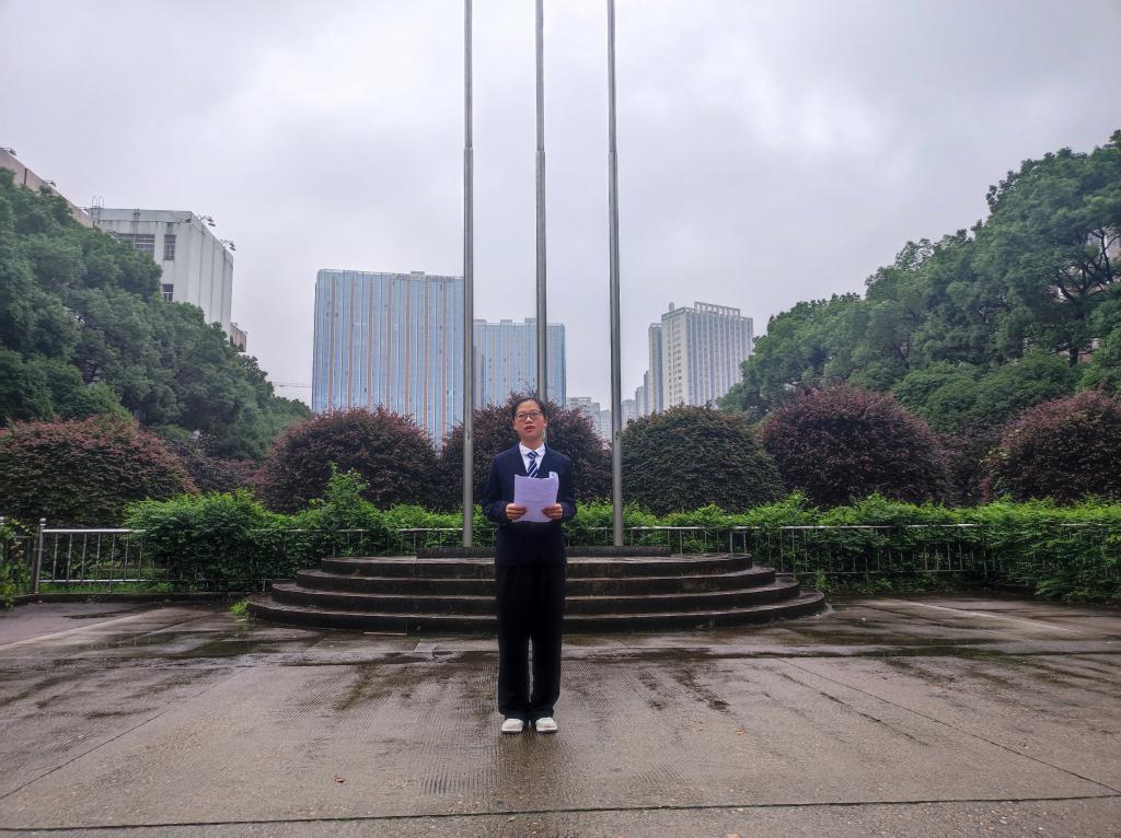 “五星红旗迎风飘扬…”,伴着慷慨激昂的歌声,国旗队带着五星红旗,迈着坚挺的步伐踏入升旗场地。6月13日清晨,土木学院在金盆岭校区办公大楼前坪举行“青春心向党,喜迎二十大”升旗仪式,年级辅导员刘文成老师、邓文杰老师及130余位2021级本科生参加升旗仪式。升旗仪式由桥卓2101班彭翔宇主持。