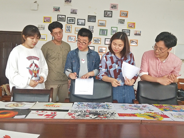 4月24日,设计艺术学院于云塘校区建筑艺术楼c302教室举行了“奋斗的青春最美丽”——纪念五四运动100周年·文化涂鸦大赛优秀作品评选活动。专业老师张桓、徐志敏、王清及学工办老师秦子玲、陈鑫宇担任本次比赛评委。