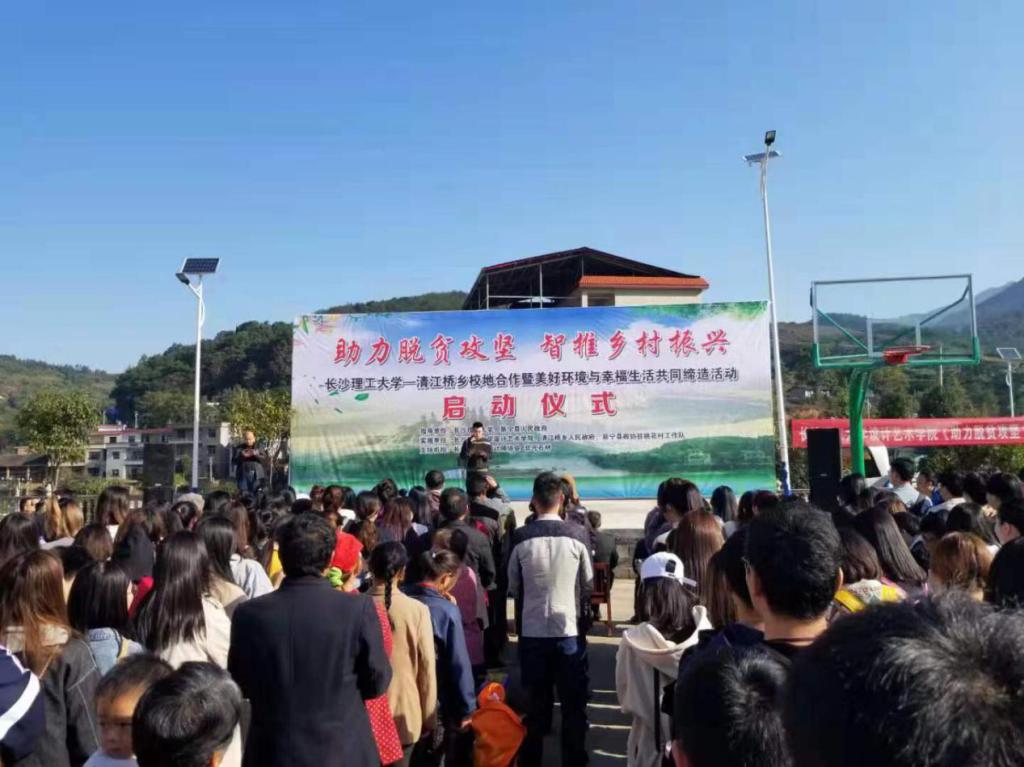 活动于11月14日上午举行了启动仪式。新宁县政协主席蒋新雄,县委常委、人武部政委潘功宏、设计艺术学院教工第三党支部书记陈书芳,系主任肖志高,党员教师李娜,教师代表谌德军教授、欧操博士、邓寒松、莫武刚、贾雨佳老师和长沙市室内设计师协会的设计师等出席启动仪式。清江桥乡党委书记焦海忠致欢迎词,对我校师生两百余人的到来表示热烈欢迎。
