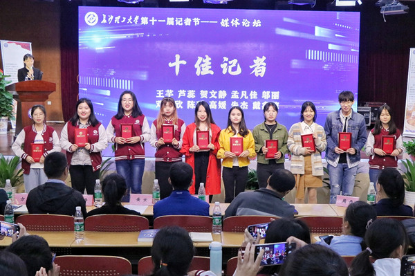 五名媒体记者围绕记者的初心与使命作了主题分享。农民日报湖南记者站站长张振中结合亲身采访故事表示“负责任很苦,但尽责任很乐”。新湖南编委左丹认为“做一名优秀的记者,要写有温度,有思想的报道,要对文字和职业永存敬畏之心”。中国青年报湖南省站长洪克非从“学习和选择”的角度出发,鼓励在场新闻人不断学习,选择适合自己的正确方向,“充满意志地坚持下去,这样才跟得上媒体领域的高速发展”。我校1995级优秀校友、被誉为中国产经写作第一人的法制网财经部主任曾高飞激励新闻学子们要学好专业、出类拔萃、坚守初心。三湘都市报科教版主任黄京则讲述了她14年记者生涯的获得感,认为选择记者就等于选择了不断学习、不断进取。