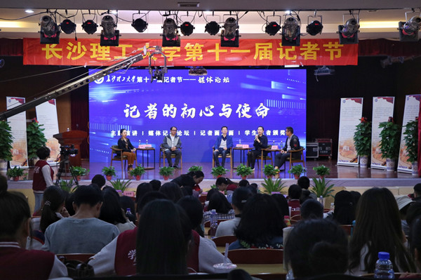 11月12日下午,我校在文法学院模拟法庭举办第十一届记者节系列活动之“记者的初心与使命”媒体论坛,中国青年报、农民日报、三湘都市报、法制网、新湖南、红网、湖南教育电视台等媒体记者应邀与我校学生记者和文法学院新闻系学生讲述他们的从业故事,分享了他们对初心和使命的理解。校党委委员、党委宣传部部长方琼,文法学院党委书记孔伟红、副院长魏桃初出席论坛。
