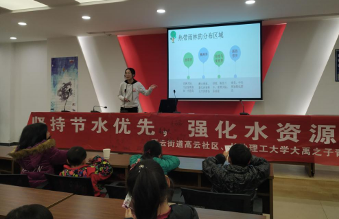 “我们用的水主要来自于地表水和地下水,降水、蒸发和径流决定了一个地区的水资源总量”,3月,大禹之子青年志愿者协会的志愿者们走进社区围绕水资源保护与生态环境保护等内容为社区的小朋友们上了一堂生动的环保课堂。“你们知道水能发挥什么作用吗?”、“生活中我们需要水”、“农民伯伯灌溉需要水”、“水还可以养鱼”,在志愿者的引导下,小朋友们对于水的来源以及水在生产生活中的重要性有了深刻的认识。而通过地区干旱、水源污染、湿地破坏等视频的展示,小朋友们对地区水资源分配不均、生态系统相互影响、保护水源人人有责等进行了学习并在节水护水横幅上庄严的签上了自己的名字,表节水之心、示护水之行。