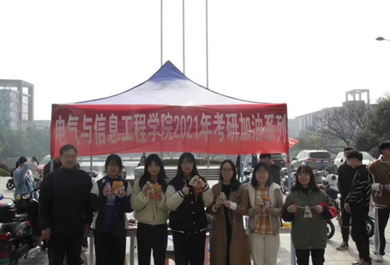 12月7日,电气学院在云塘校区图书馆前坪举办“考研加油系列活动”。电气学院党委副书记任艮丰、团委书记田孟萍、20级辅导员杨宸君和19级辅导员范凯来到现场为考研学子加油打气。