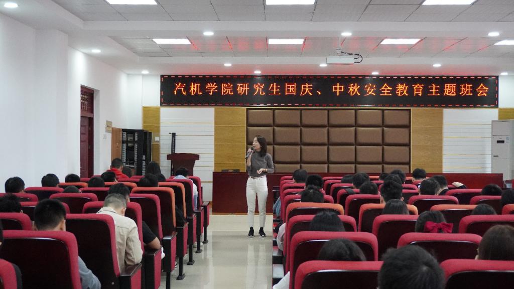 为进一步落实学校关于做好国庆、中秋假期学生安全管理工作的通知要求,9月28日上午,汽机学院在工科一号楼组织召开研究生国庆、中秋假期安全教育班会,研究生辅导员宋新主持会议,汽机学院全体研究生到场学习。