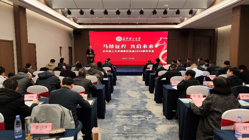 马踏征程,共启未来。1月24日,我校河南校友会2026年新年年会暨智能化低碳建养技术论坛在许昌迎宾馆举行。校党委委员、副校长刘朝晖,河南省公路学会首席专家张全林,理事长朱理平,原河南省交通运输厅一级巡视员李强,学会副理事长王春江出席,学校校友中心、交通学院等单位负责人及在豫校友、校促会会员共160余人参加活动。河南校友会会长张良奇主持了智能化低碳建养技术交流会。朱理平致开幕辞,我校交通学院副院长吕松涛作...