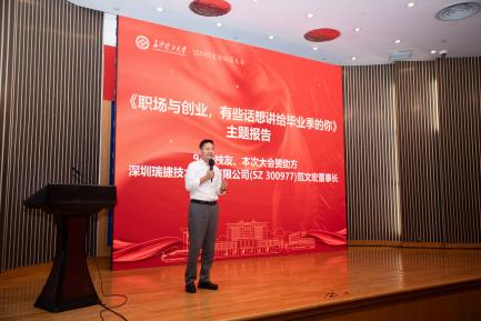 换届会议结束后举行了2场专题报告。学校人工智能学院学术院长樊绍胜主讲《人工智能与机器人发展现状及展望》,深圳校友会执行会长、深圳瑞捷技术股份有限公司董事长范文宏主讲《职场与创业》。