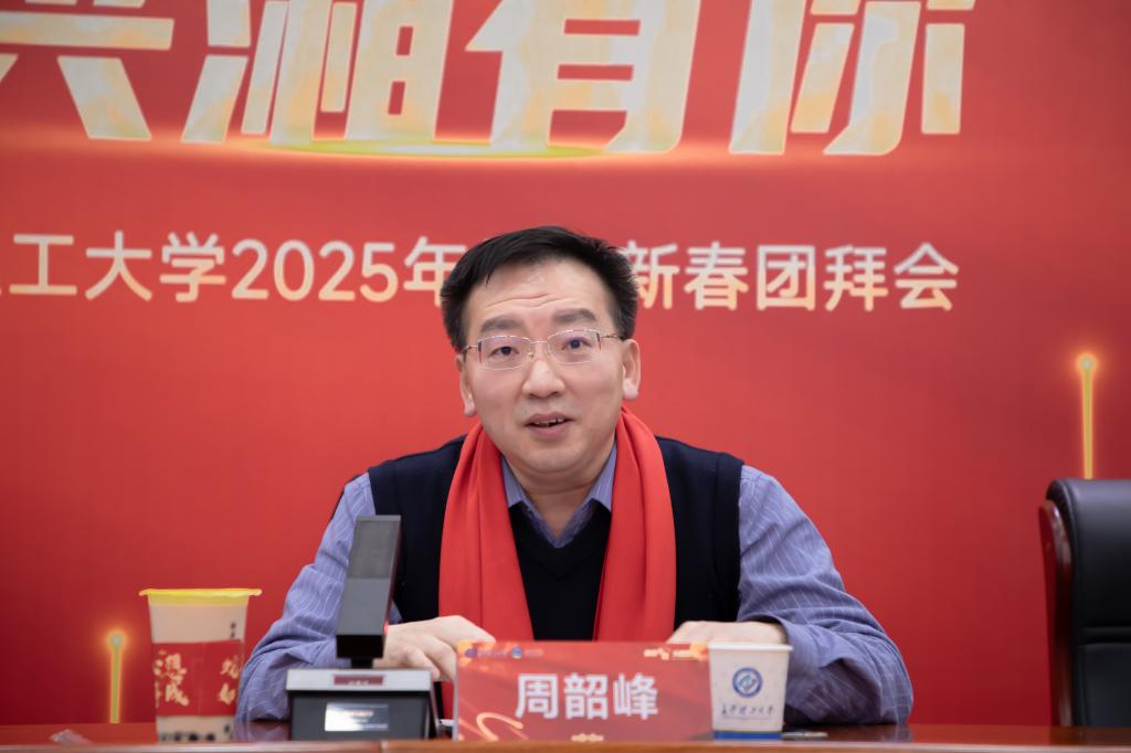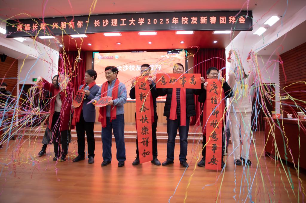 1月18日上午10点,2025年新澳门原料网站在云塘校区一办九楼会议室举行了2025年“校友回湘”新春团拜会。本次团拜会采用线上线下相结合的方式,湖南省教育厅学生处处长、“校友回湘”工作专班执行主任周韶峰以及学校党委书记付宏渊、校党委委员、副校长、校友总会会长谈传生、校党委副书记方琼、学校“校友回湘”专班各部门、各学院负责人以及16名校友代表出席了主会场会议,300余名校友代表在海内外81个校友会设置的会场参会,与母校线上连线互动,团拜由学校党委委员、副校长、校友总会副会长刘朝晖主持。