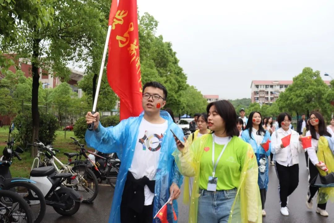 湖南高速集团校友队11级交通工程专业的邹智敏校友一边挥舞着小红旗一边说:“刚刚在起点合照的时候我就在想这个主题太好了,中国共产党的诞生在我们民族危亡之际给中国带来了曙光,这样的活动十分有教育意义。”