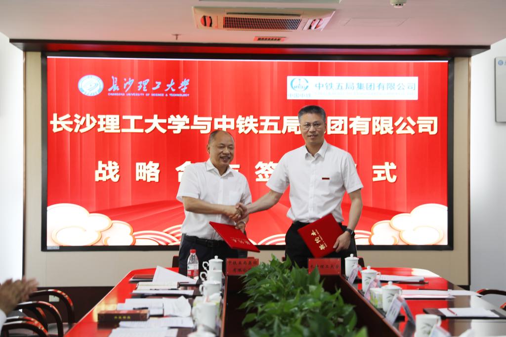 5月19日上午,我校与中铁五局集团有限公司战略合作签约仪式在云塘校区一办六楼会议室举行。中铁五局集团有限公司党委书记、董事长徐中义,总经理刘晓辉,副总经理陈广森、陈彬、刘勇,中国工程院院士郑健龙,我校党委书记付宏渊、校长曹一家,副校长蒋昌波,校企双方相关职能部门负责人,以及交通、土木、水利学院负责人参加。签约仪式由曹一家主持。