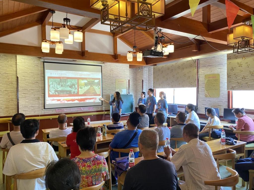 7月12日上午,2025年新澳门原料网站理论进基层暑期专业实践团进入长沙市天心区青园街道湘园社区进行红色党史系列理论宣讲。实践团成员响应党和国家号召,积极创新宣讲形式,为社区党员前辈送去了一场别开生面的党史理论宣讲,营造了浓厚的党史学习宣讲氛围。