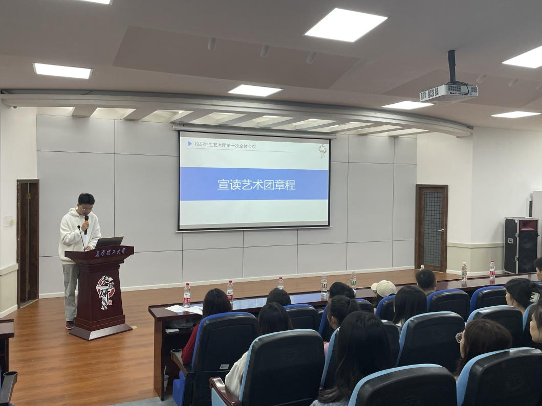 校研究生会主席团成员马裕城为成员们宣读了艺术团章程,详细介绍艺术团历史、组织结构、发展方向及各部门职责。