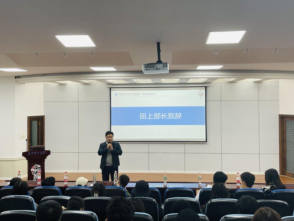活动伊始,田上首先致辞,他对大家大家加入研究生艺术团表示了欢迎,希望大家这个平台互相学习互相帮助,能创作出更多的作品来丰富研究生生活、展现研究生风采、讲好研究生故事。田上指出学校已经进入双主体新阶段,作为学校办学主体之一,研究生在校园文化建设中应发挥更重要的作用,希望在校园文化活动中有更多研究生的身影,更希望在全省乃至全国的艺术平台中展现长理研究生的魅力。