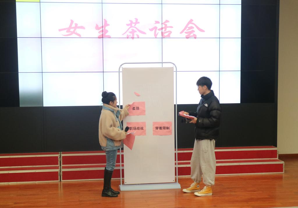 文艺部、权益部、新媒体中心联合策划了面向女生特别活动,向广大女性研究生宣传高效维权知识。在女生茶话会上,通过“撕掉标签做自己”、“倾听巾帼好故事,传播女性正能量”、“女性维权小课堂”三个环节,帮助女生在权益受到侵害时,熟练拿出应急方案,以合法的途径解决侵权问题,维护自身的合法权益。对此参与活动的王同学深有感触,撕掉标签勇敢做自己,通过学习历史上优秀女性的故事、女性维权知识,充分彰显了女性在历史长河中伟大的形象,有效提高了大家的维权意识。