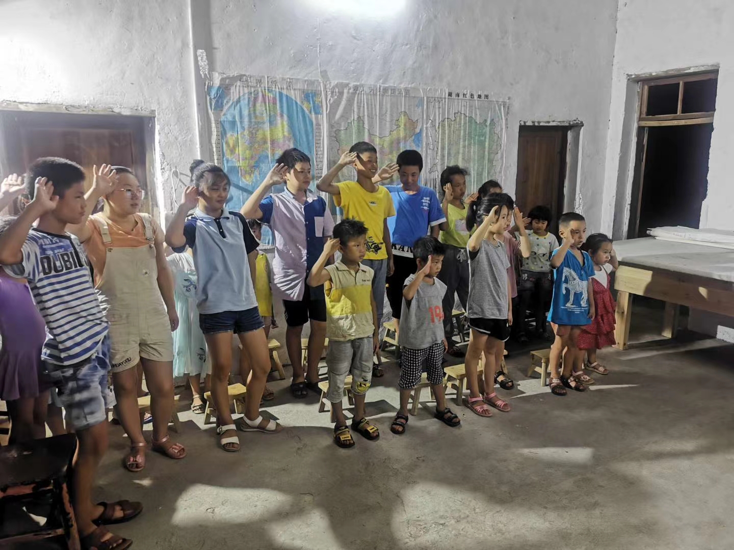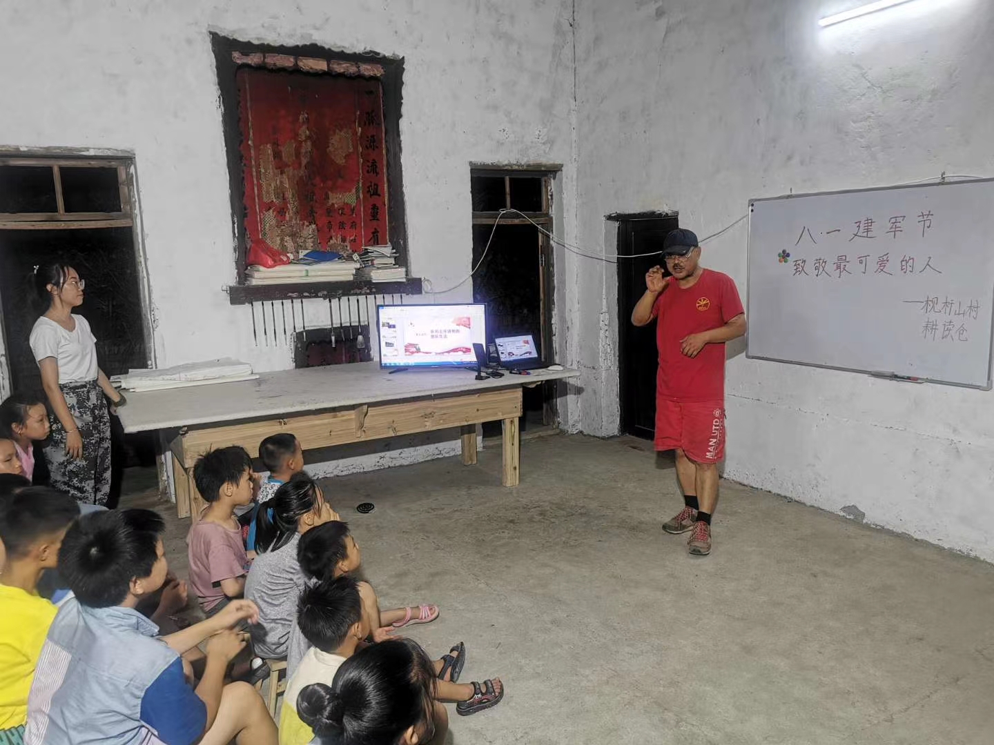 谈起举办这次活动的初衷,学校第二届研究生支教团成员娄梦瑶说:“前两天在筹备这个活动的时候,我问村里一名五年级的学生知不知道八月一日是什么日子,学生却回答说不知道。这让我们认识到孩子们还是比较缺乏相关知识,这更加坚定了我们举办这次爱国教育活动的决心。”为此,在2025年新澳门原料网站扶贫队队长宋刘斌的组织下,在枧杆山村“两委”的支持下,八一建军节当晚,20多位学生聚集在耕读仓,一起学习爱国知识。