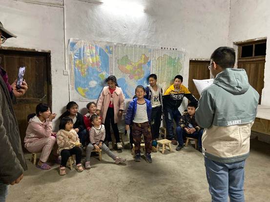 当然“耕读仓”不能仅仅只是一个陈列农具的展览,更要让耕读文化活起来。研究生扶贫支教队队员们主动提出来利用晚间为村里的孩子们开设中华传统文化课堂。支教队的研究生们结合自身专业优势,精心设计了课程和活动体系。“耕读仓”活动每周一次,除了必备的“经典诵读”环节外,他们以《说文解字》为教学基础,结合中国传统民间故事,为孩子们解读耕读传家的意义,同时还将在二十四节气和传统节日时,组织相应的生产劳动和实践,开展劳动教育,让孩子们更加生动地体会和感受身边的传统文化,并进而深刻理解和传承中华民族勤劳勇敢、自强不息的民族精神。