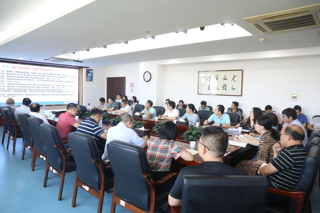 胡永乐总结会议。他指出,要规范研究生培养程序,把握好各环节时间节点和培养质量;要落实导师指导责任,建立良好的导学关系,做好研究生的引路人。他强调,研究生教育关系到学校高层次人才培养和高质量发展,各培养学院要高度重视、统一思想,聚焦立德树人根本任务,提升我校研究生教育工作内涵发展水平,为决胜建成“百强”大学贡献力量。