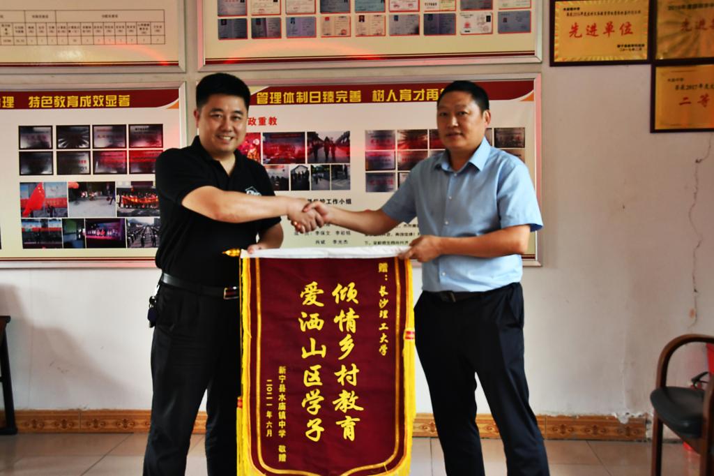 6月22日,我校第二届研究生支教队圆满完成在新宁县水庙中学的扶贫支教工作后启程返校,校研究生院副院长兼研工部部长田上等一行前往新宁县水庙镇枧杆山村迎接支教队返程。