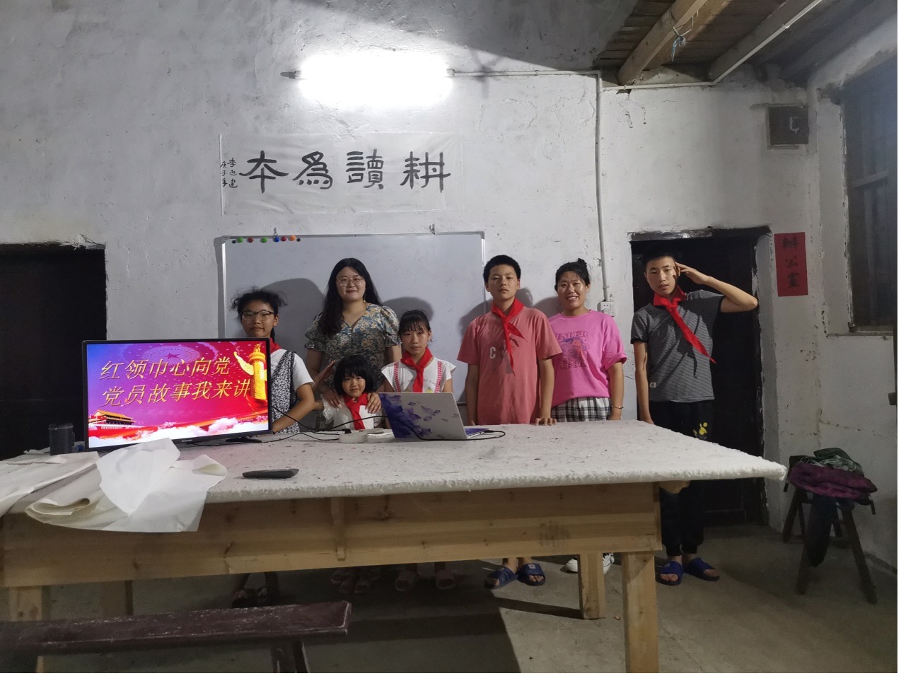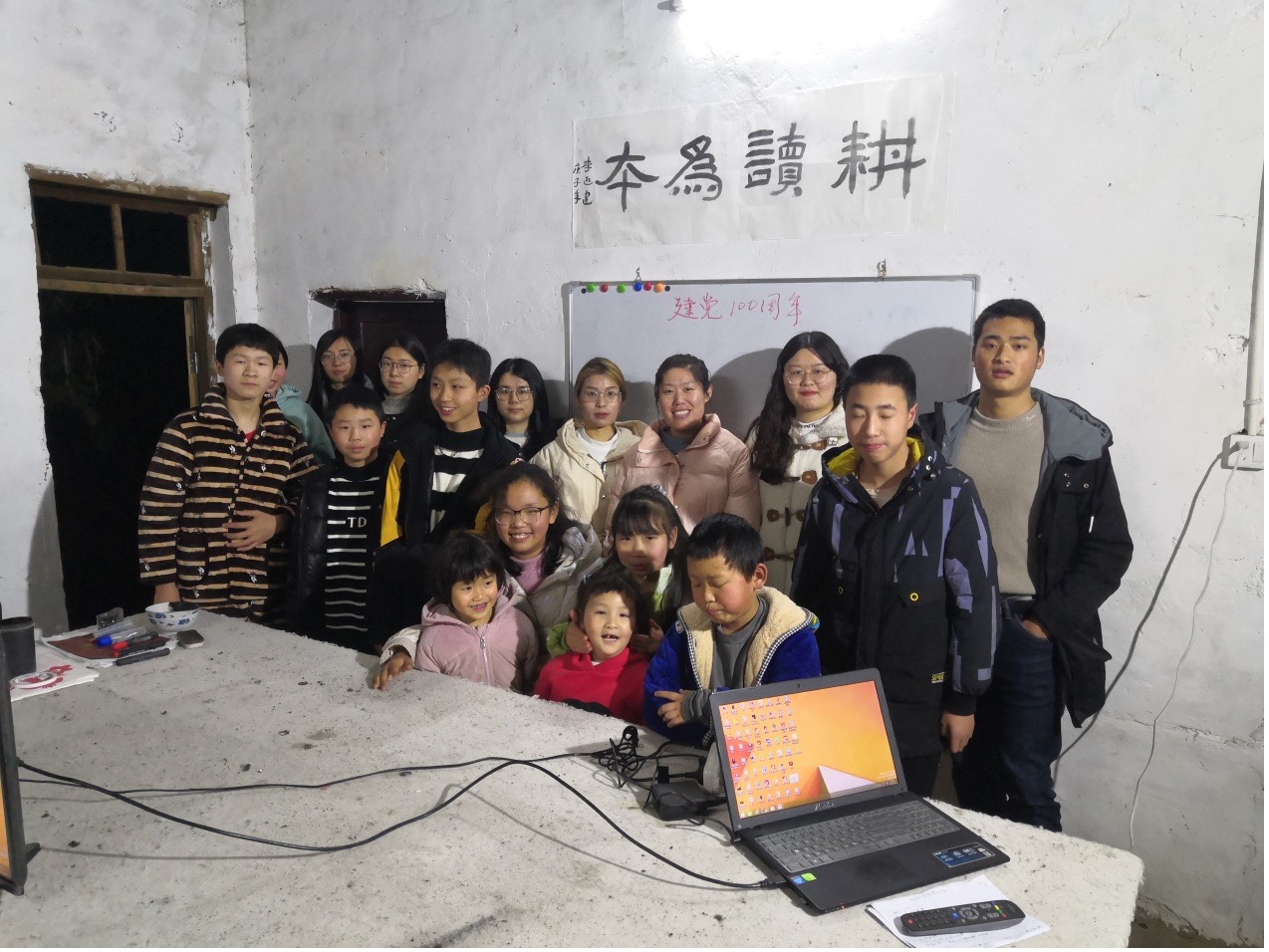 恰逢建党百年,本学期开学以来,支教队便将四史教育融入耕读活动,每周周末晚上在“耕读仓”开讲。队员们通过讲述一个个生动鲜活的四史故事,为学生们打开建党百年的时空之门,使他们感受历史文化渊源,感知四史文化脉搏。此外,支教队员还组织学生观看爱国电影、学唱红歌,引导学生重温红色经典,了解中国革命史和中国共产党历史,感受革命情怀。