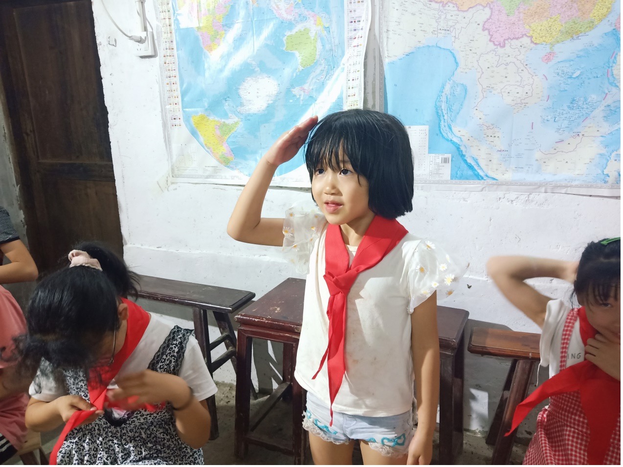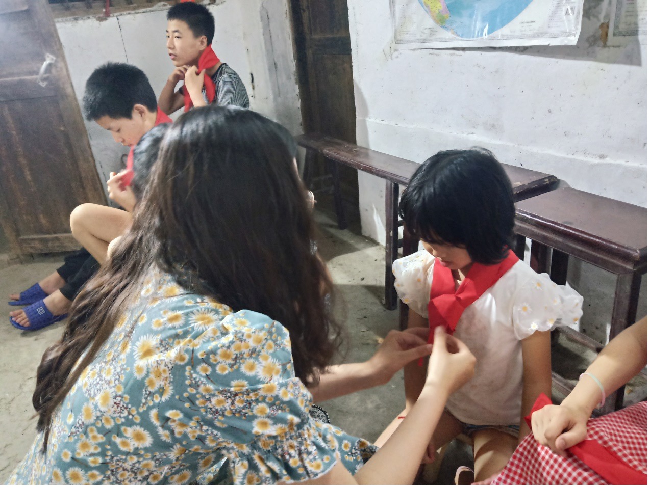 为将“四史”学习内化于心外化于行,支教队员们还为学生们讲述了少先队的发展史并教学生们系红领巾,学习和感受少先队的历史文化、体验加入少先队的仪式感。不仅如此,支教队员们还创新课堂形式,打破授课传统,鼓励学生们以“党员故事我来讲”的方式,讲述了小英雄雨来、鸡毛信、刘胡兰等一系列红色故事,让学生更有参与感,带动了学习四史的积极性。研究生支教队也表示,由学生主讲的方式让课堂变得更加的活跃,提高了学生对于四史的接受度,让他们更充分的融入课堂。
